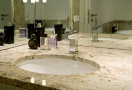Granit ist beständig und leicht zu reinigen und eignet sich daher ideal für die Einrichtung des Badezimmers. Sprechen Sie uns mit Ihren Ideen an und wir erstellen Ihnen Waschtische, Badewannen und Duschen nach Maß in der Textur Ihrer Wahl.